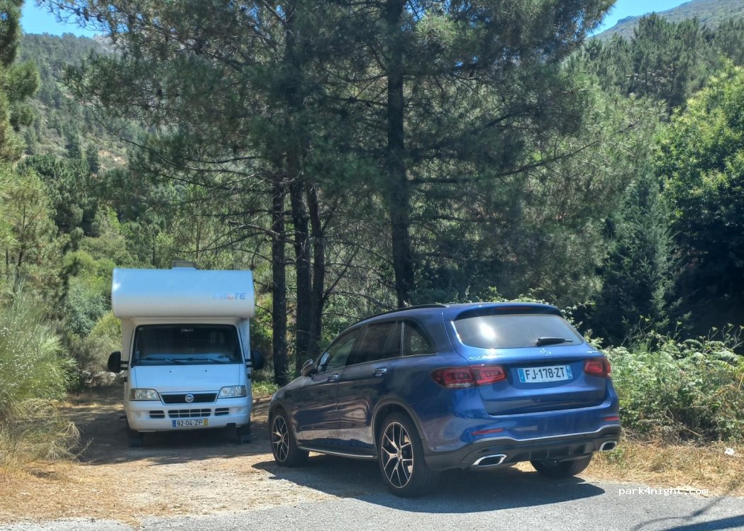 Good flat and shadowed place at dead end gravel path, good to park motorhomes on EN 231, 250 m S of very nice LORIGA mountainous river beach (where is difficult to park on Summertime, due to busy). Activities are on beach. Besides road, there’s low traffic on night. Services available on free motorhome area in the village (search it here).