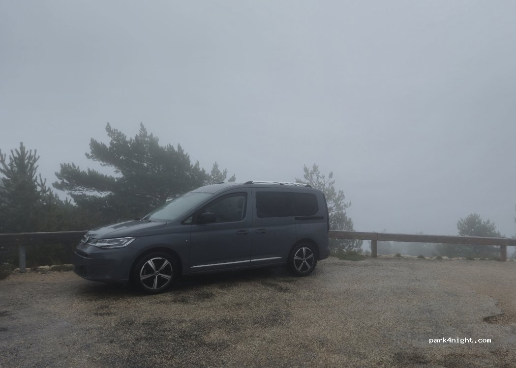 The disabled spot is on a very sloped place, so even though I could ( ♿️ ) stay there I rather park at the parking lot in the last turn. Still little uneaven ( 5°) but ok for the night . Unfortunately had a lots of rain and fog, so no views for me...