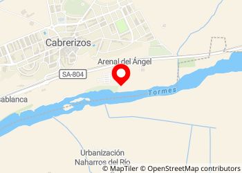 Nice, beautiful place, not paved. It is near a camping: we chose not to sleep here because of the music and noise from the restaurant at the campsite. The route by the river is awesome, you can easily bike to Salamanca (~15 km each way, flat, not paved). Swimming in the river is forbidden, although we saw some people doing it. No services, but you have the campsite.