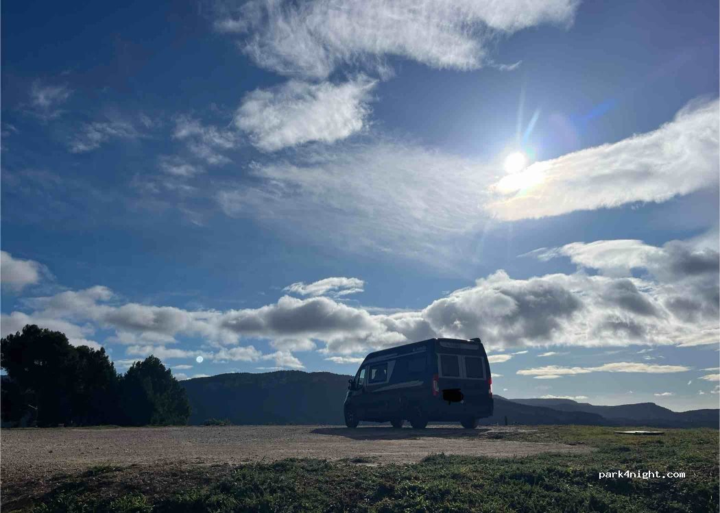 Fabulous spot on top of the world. It was just us in a 6m Ducato, it is very narrow through Albarca but doable. Loads of flat space to choose from with divine scenery. Start of some great hikes also access to the GR route.