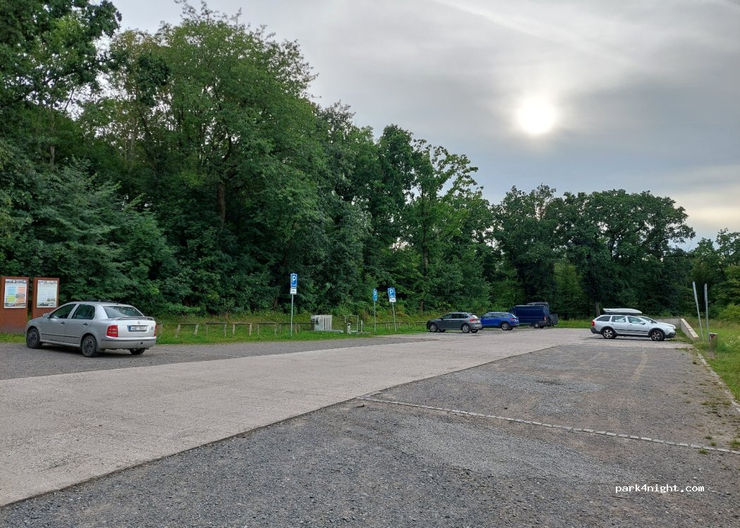 Skvělé místo na přespání v karavanu. Dost volných míst, jen v předvečer se tu sešlo pár aut s hudbou, ale v noci klid. Jen 300 m od parkoviště krásná rozhledna, dětské hřiště a bufet (platba jen v hotovosti v bufetu).