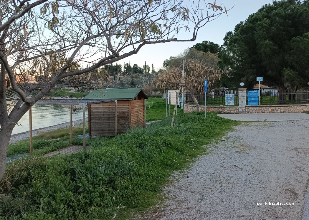 Parking privé au club de plage Kalafatis, à l'extérieur de Galaxidi. Vous pouvez y passer la nuit sur demande auprès des propriétaires ; par courtoisie, nous avons également décidé d'y passer la journée. Des parasols et des chaises longues sont mis gratuitement à votre disposition si vous déjeunez au bar, qui propose salades, sandwichs et grillades.