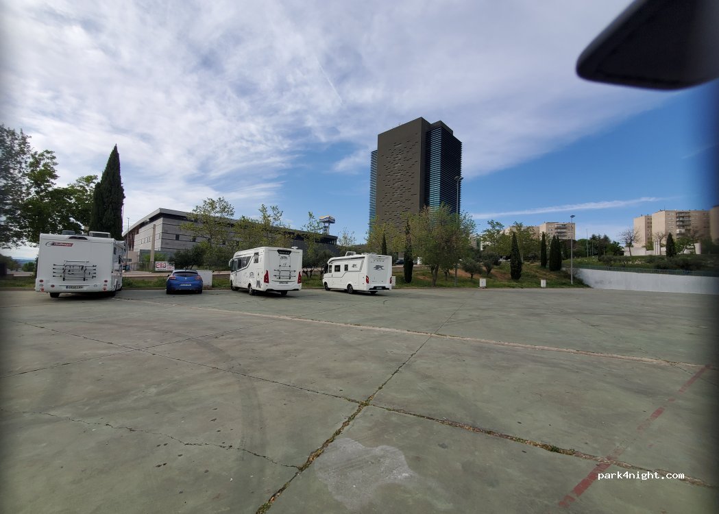 Gran parking detras del centro comercial Ferial Plaza, en la salida número 55 de la autovía A2. Ideal para dormir un día si estás de paso.