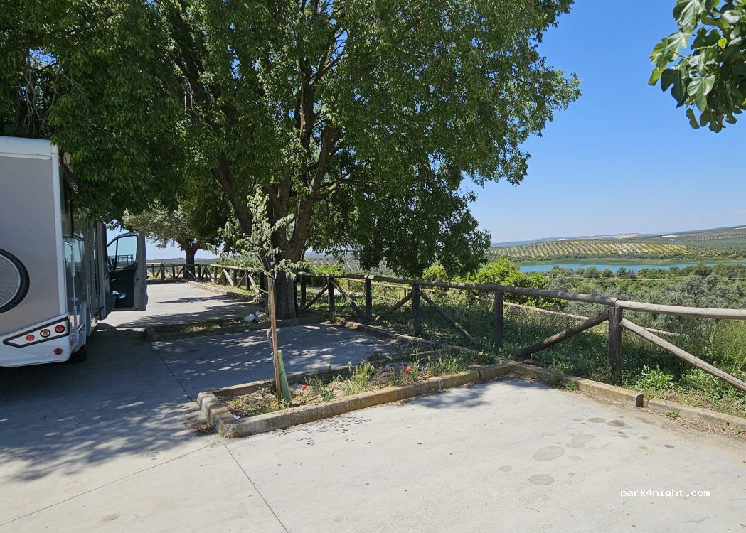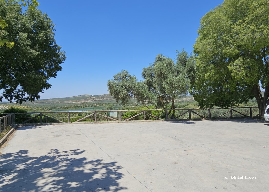 Parking with some shadows and picnic area in the parking lot of the visitor center of the Lagunas de Zoñar, a place of high ecological level, protected space, good for a rest, there are no prohibition signs, hiking trails and bird watching.