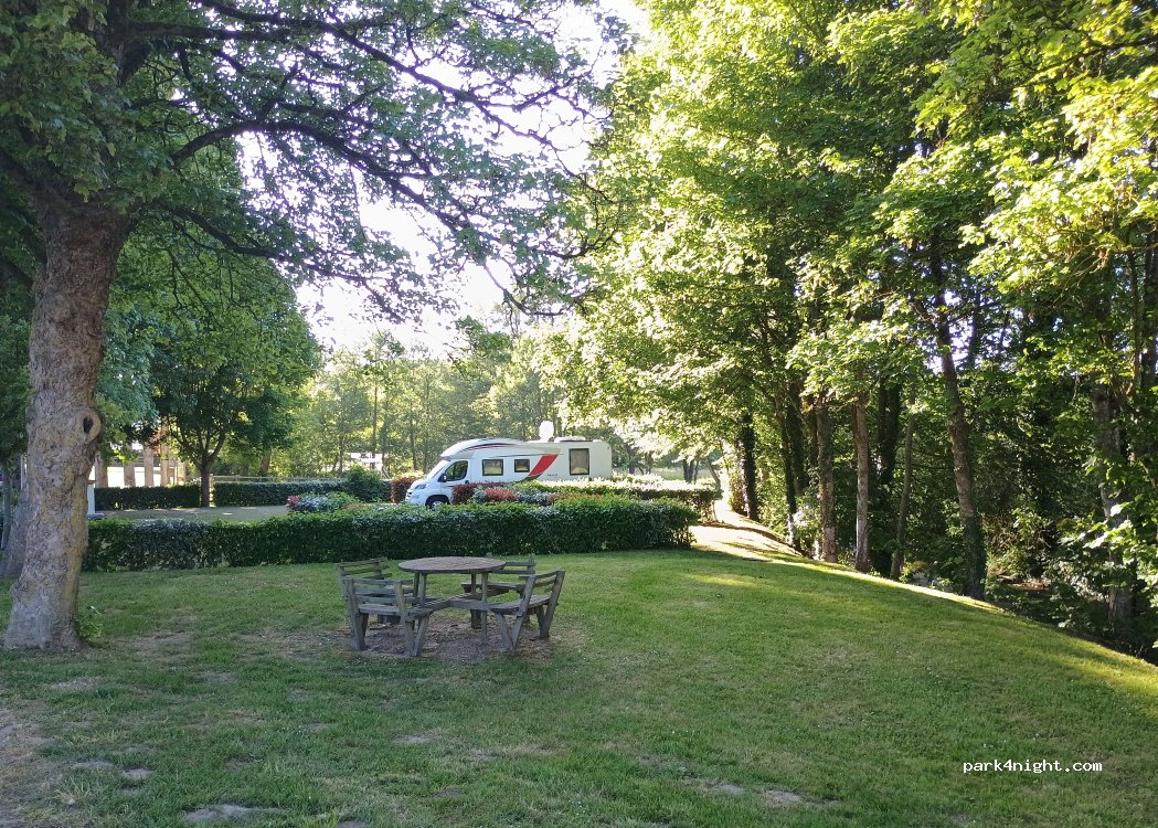 Aire très sympa avec des emplacements bien délimités par des haies. Site arboré très agréable. Jeux pour enfants 2-10 ans jouxtant l'aire, très appréciés par nos petits. Merci à la commune.