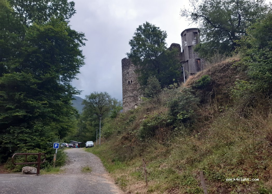 dormit ici le 25 juillet, spot super tranquille, avec poids lourd 9m. nos enfants ont pu profiter de l'aire de jeux, terrain pétanque et city parc,WC avec eau potable ouvert en été, vue sur le château, nous avons passé un chouette moment avec les gens de ce village qui sont très chaleureux.