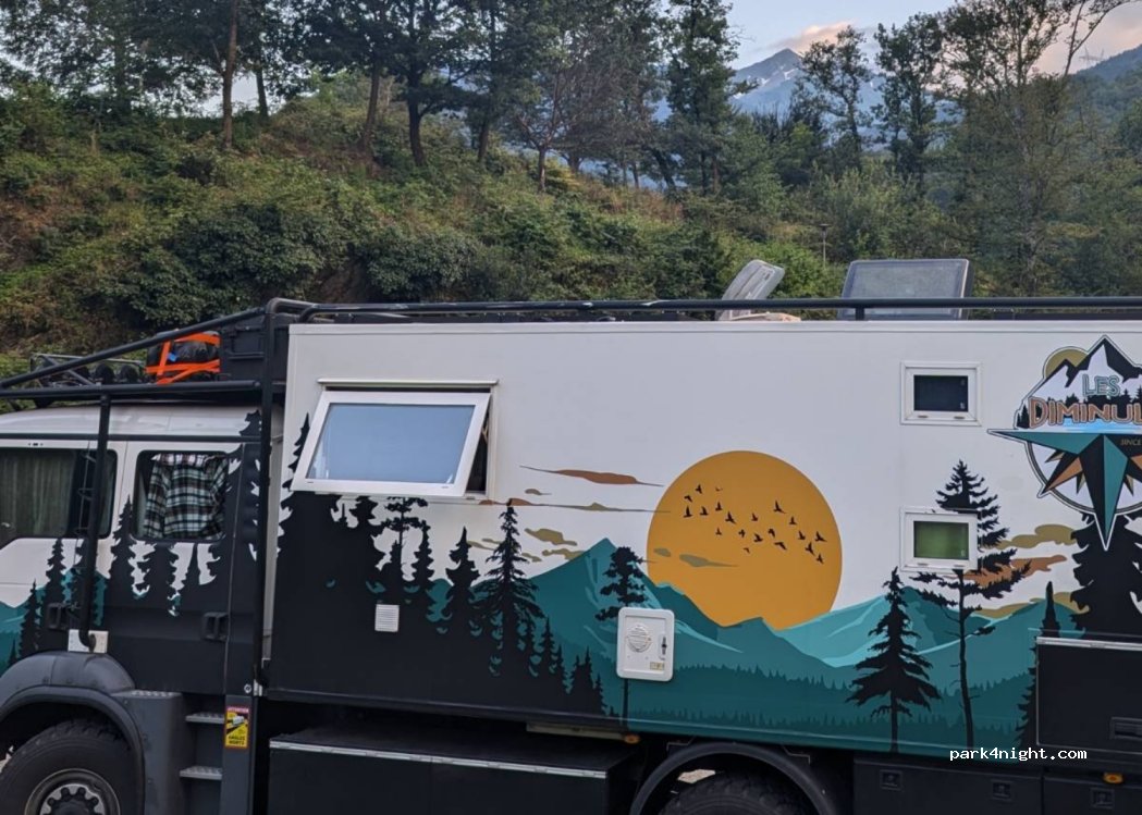 Leuke plaats zoals eerder gezegd. Bijna in de tuin van de mensen. Geen vergezichten gezien in kleine vallei met klein dorpje. Indien gn plaats zou vr de mairie een vlakke mogelijkheid zijn.
