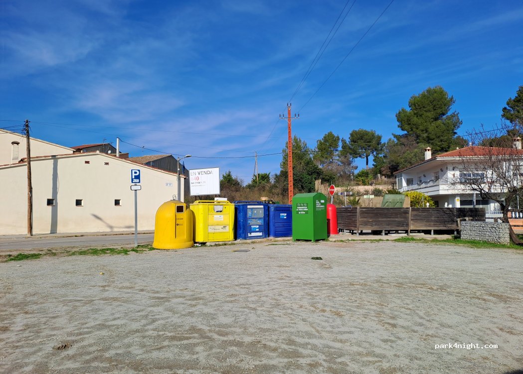 Es un simple parking con seÑal para autocaravanas , no pernocte pero conozco el pueblo y es muy tranquilo , zona de senderismo de los salts de cabrera d'anoia-canaletas . Sin servicios