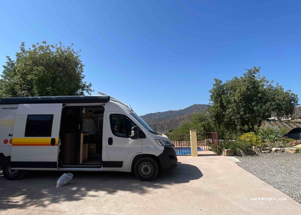 Great place to stay with very friendly British owners! There is enough room to park, the shower & toilets are amazing and there is even a pool. We extended to two days just because we had such a relaxing time. The road towards the place is typical Spanish, but very well to drive. We drove with a Renault master and it was good to do. Great views also on the road!