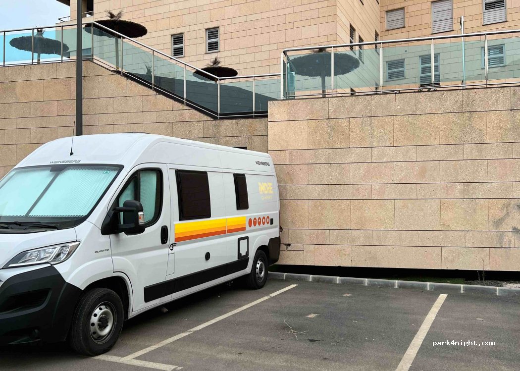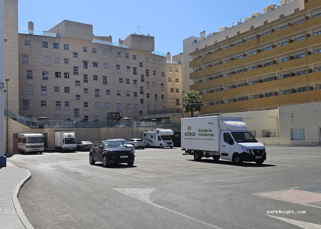 We parked here to explore Marbella during the day! Walking distance to the center. A bit tight with a 7.1 m vehicle unless you get a spot where the rear can hang over the edge. We didn’t stay overnight, but we felt safe leaving it here during the day.