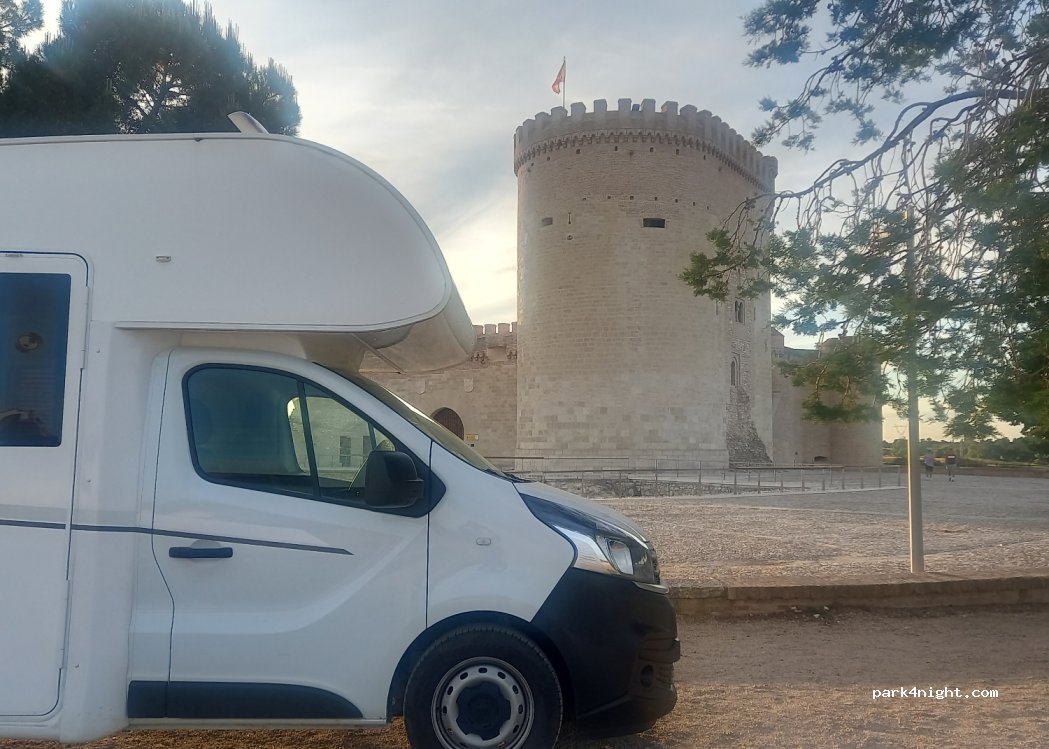 Parking tranquilo, gratuito, sin servicios, donde se puede pernoctar. Esta justo al lado del castillo, que también es museo del trigo. Se puede visitar, en verano el horarrio es de lunes a domingo desde las 10:00 hasta las 20:00. Facil acceso para AC.