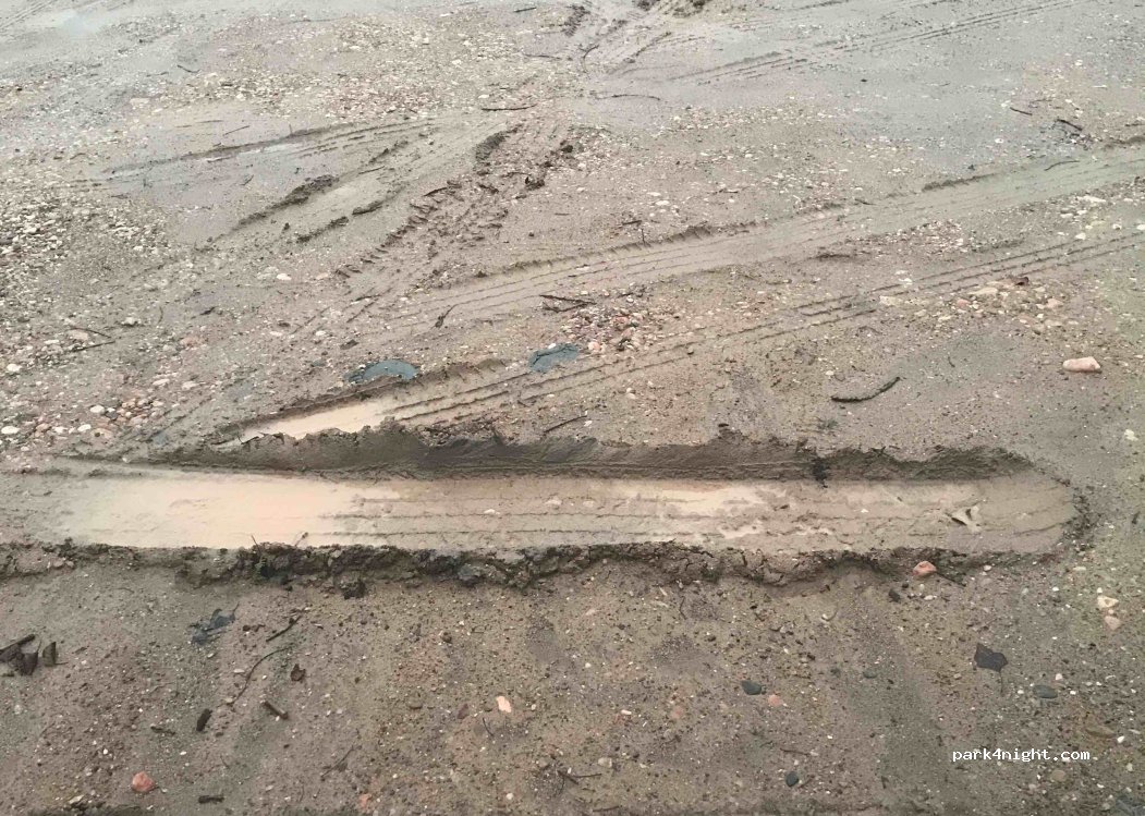 Ene toegang heeft te lage takken voor camper (mh/rv) en een moeilijke haakse bocht, de andere toegang heel steil, ongeschikt voor grotere campers. Uitzicht zeer matig, nieuwe snelweg zeer dichtbij en rumoerig.