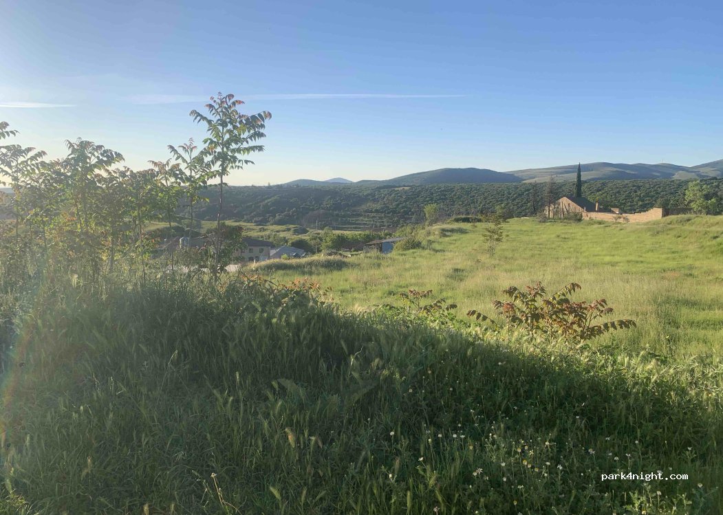 Juste avant le portail d’entrée de la piscine. 2 places maximum avec vue imprenable sur les monts alentours et lever de soleil magnifique.