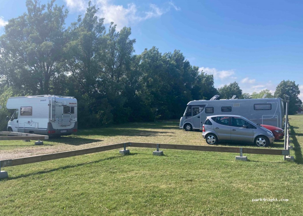 Kostenlose Parkplätze auf Gras in der Nähe des Yachthafens