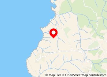 10 min walk from Ursa Beach, small clay area covered by pine trees to the right of the main trail.