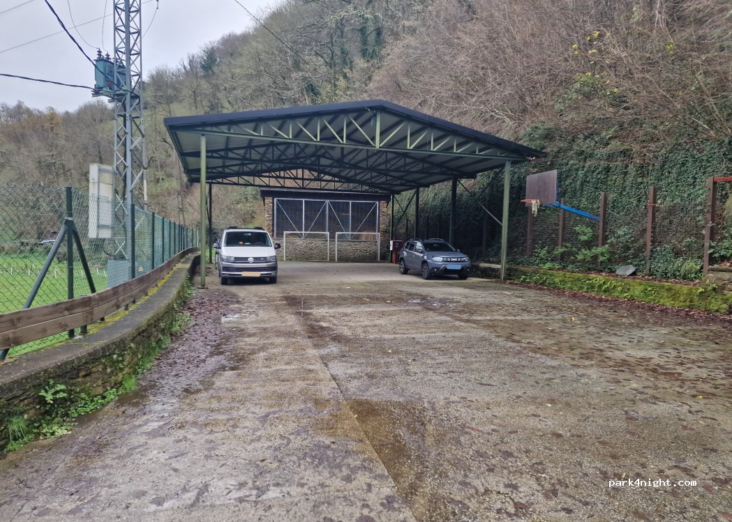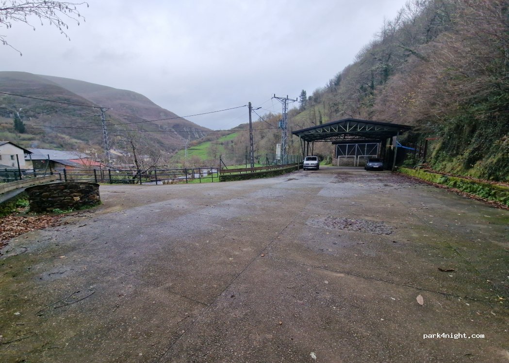 Parking area in the village of Moal next to the beginning of the Moal Woods hiking trail next to Muniellos. Very quiet area next to the river. Ideal for spending the night. Narrow entrance for large motorhomes.