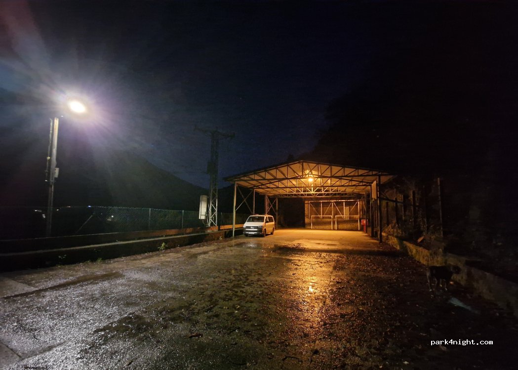 Lugar llano y tranquilo. Justo en el acceso de ruta de senderismo. Quizás, demasiado iluminado por la noche.