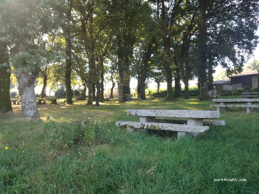 Belle aire de pique-nique avec fontaines, très calme à côté d'une église et zone couverte. idéal pour passer la nuit