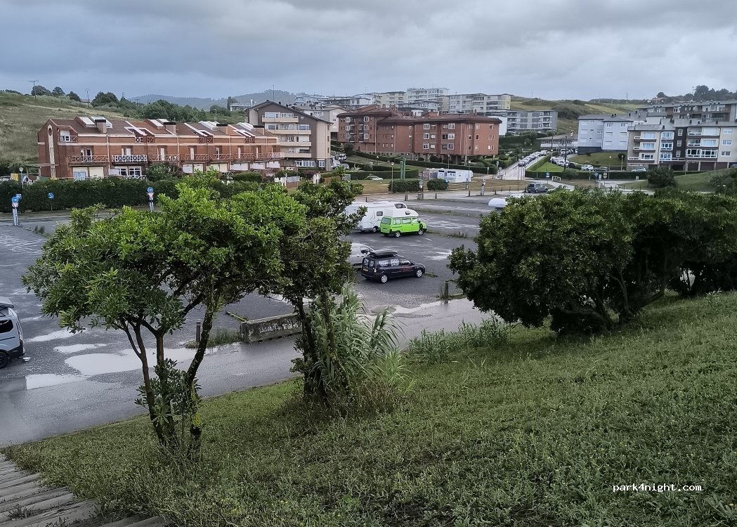 Parking on Sopelana beach, 5 minutes walk from the beach, big parking lot with small playground, bathrooms but now because of covid they are closed. A very closeby bar, where you can use the bathroom. There are drinking fountains and bins. The views from above are impressive. Paid parking during the day (10am to 8pm). 10€ for 10H. Only for small campers. Longer than 5 meters is NOT allowed, will be turned away by the police!