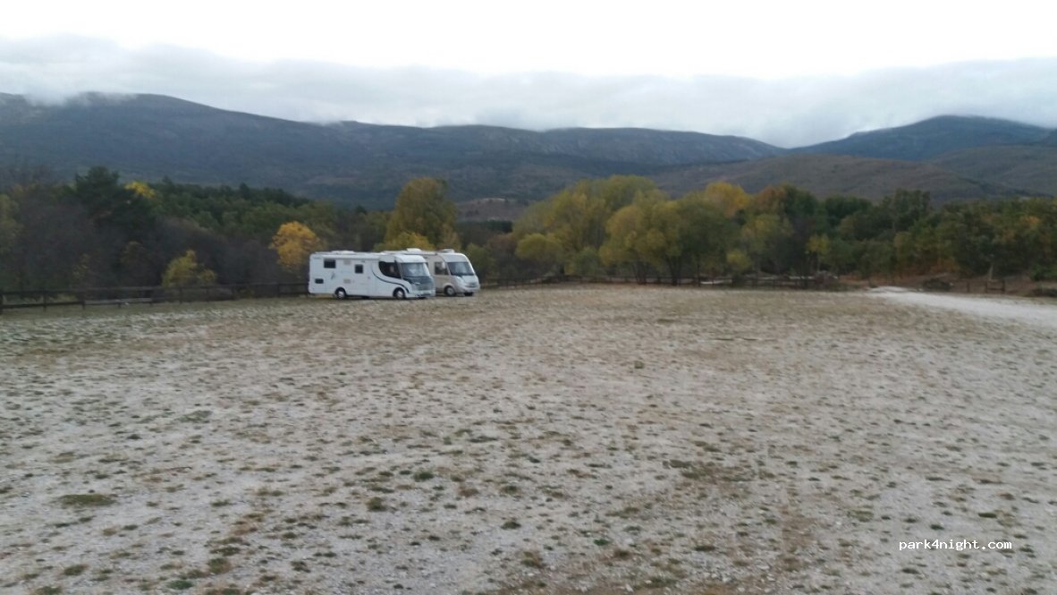Parking of the natural pools of "Las Presillas" has many parking spaces, without size limitations (there are spaces for buses) large green area with a beach bar in summer (which has a bathroom ONLY for customers). The car park opens from 9 a.m. to 9 p.m. and is closed at night, so if you don't take your vehicle out, it will be held (it can't be taken out). In the gatehouse at the entrance we have asked and you can spend the night, in the morning they come to collect the new day. Chairs, tables, awnings, tents, ball games... but everyone puts them up is prohibited on the meadows. Dogs allowed as long as they are on a leash.