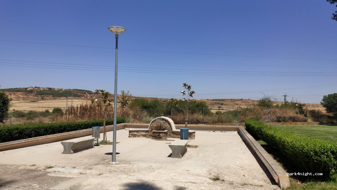 Picnic area, with tables, free water fountain, barbecues, grass and trees that provide good shade. Very quiet place. Perfect to eat or stop to rest.
