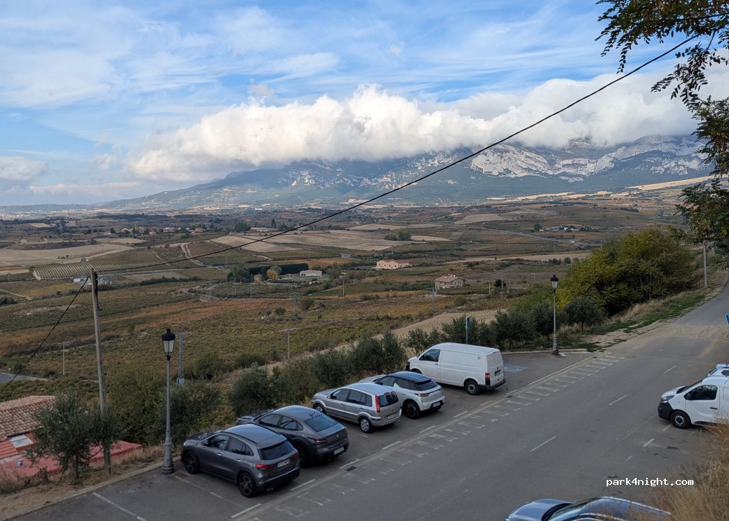 Very nice parking area with fantastic views over the Rioja area. Extremely close to town, just up a few steps and a very quiet night no disturbance whatsoever.