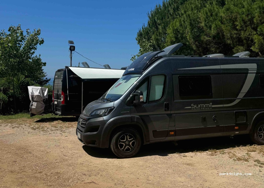 Placement idéal, a 3min de la plage et d'un bar. pas de commodités sur place mais de quoi se garer bien a plat et a l'ombre (relative), même en haute saison (en juillet, 28€ J+N)