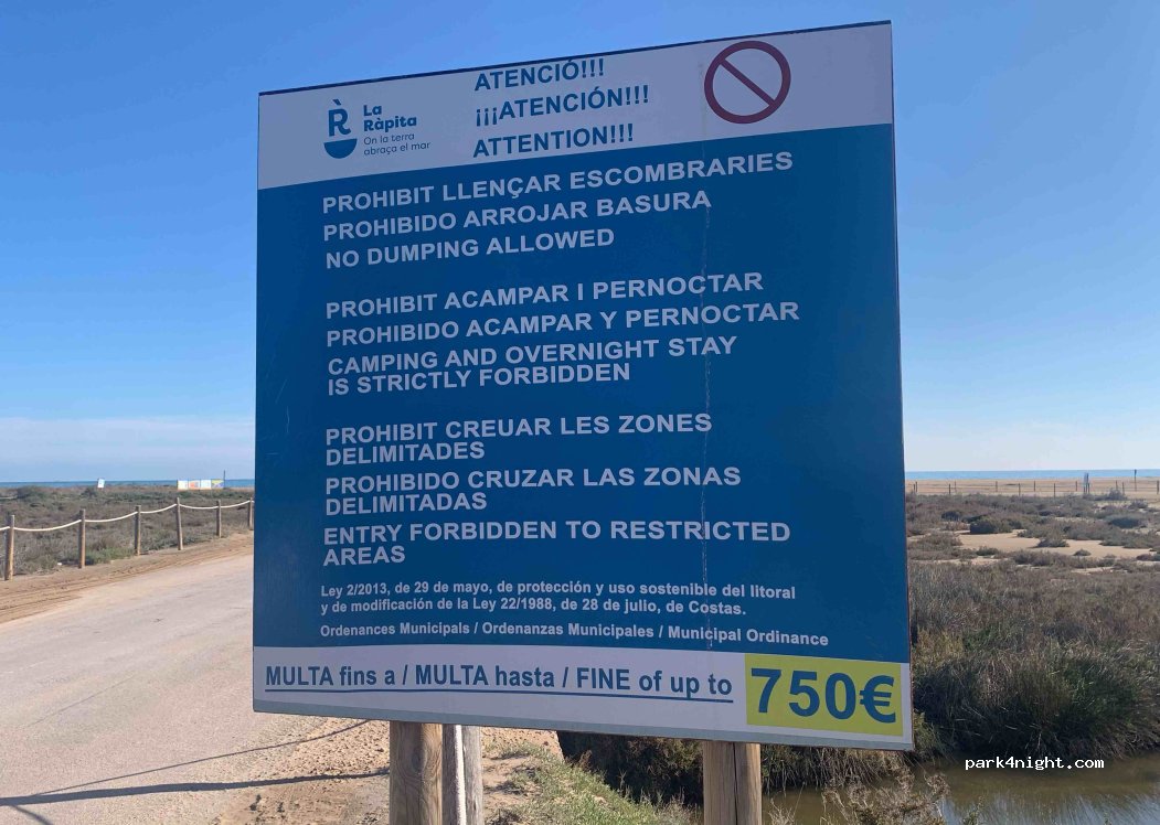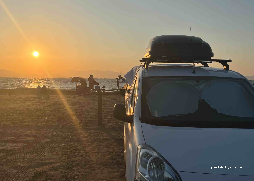 Un sitio perfecto para ver la puesta de sol. Las últimas inundaciones han hecho que la playa del trabucador se acorte. Aun así es un sitio magnífico para pasar una noche. Es cierto que al principio había una señal, pero vimos unas 20 campers aparcadas y decidimos pasar la noche. Pasó la guardia a las 9h y nos nos dijeron nada.