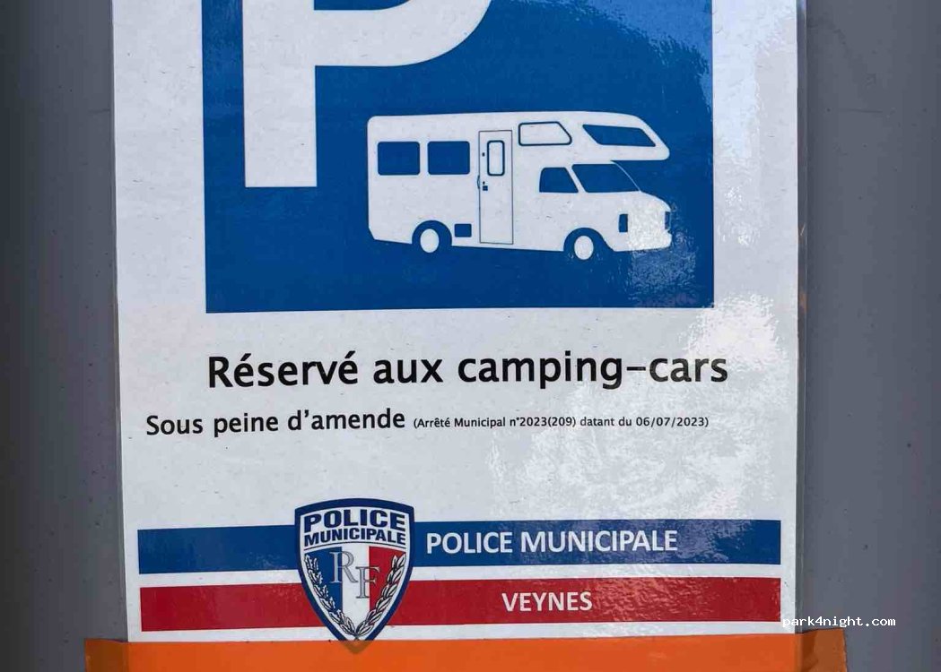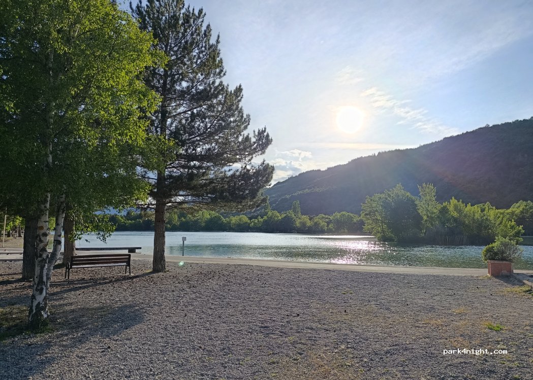 Grand parking plat, sans chien, propre, sans service cc, tout près du lac et à 35 mn à pied de Veynes. Poubelles, toilettes sales, pas de 4g SFR, le tout pour 6.50€ la nuitée à donner à un aspv qui passe le soir. Nuit très calme par contre grosse promiscuité avec les voitures en journée le weekend. Merci à la mairie de nous permettre l'accès direct au lac à un tarif acceptable c'est si rare.