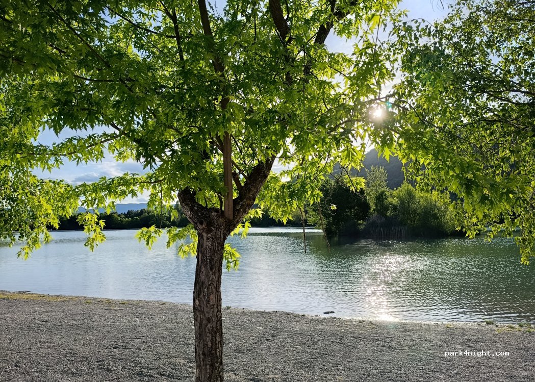 Au top parking à proximité de la base de loisirs, baignade, pédalo, jeux gonflables super pour les enfants. Idéal pour une étape dans les Alpes. Nuit calme. À conseiller