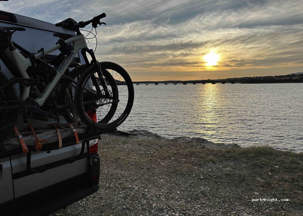 Parking at the edge of a lake, located in the middle of a bend in a road with few passages. Ideal for a stopover, possibility of spending the night there. Very nice view of the lake.