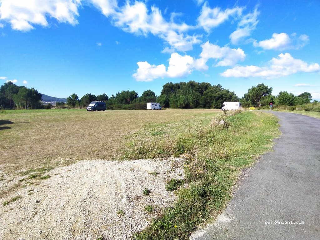 Una campa llana perfecta para pasar el día y la noche. Cerca de la playa, para acceder tiene que ser en marea baja y merece mucho la pena. Hay ducha y fuente en el mismo acceso a la playa. Hemos pasado la noche junto a otras 20 Ac,campers y furgos. Recomendable!