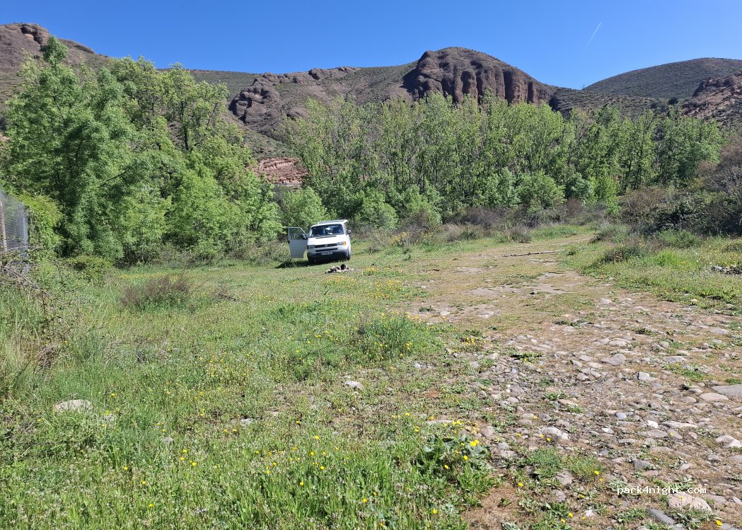 Zeer rustige plek vlakbij de weg, onder een andere parkeerplaats, het is een onverharde weg die erg goed is om af te dalen, het ligt naast de rivier en er komen meestal niet veel mensen.
