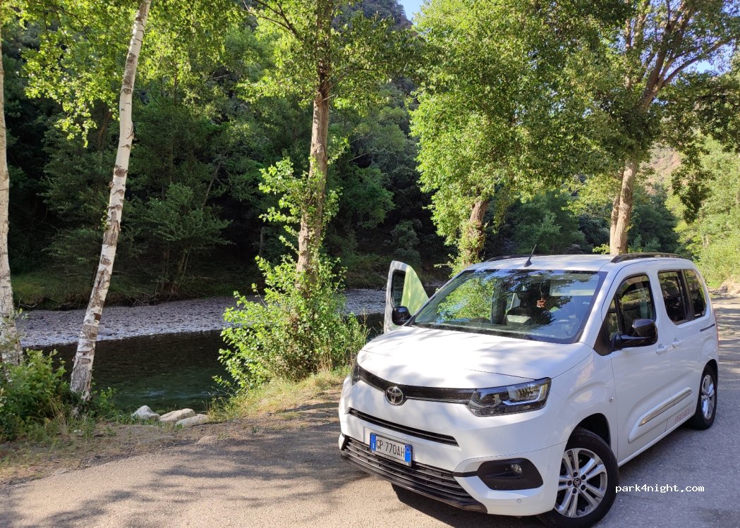 Parking, access to the river to bathe. Be careful with the water level and possible river floods in case of rain. Locals tell us that in times of heavy rain it floods. Very nice site. the night is cool. We have slept several nights with a motorhome.