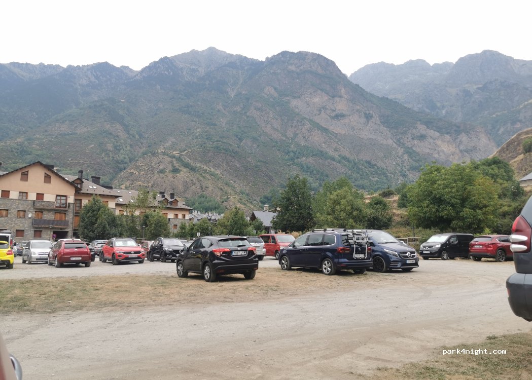 Aparcamiento municipal muy bien ubicado para visitar el pueblo. con cesped y bien nivelado, pero sin servicios. Hay plazas a la sombra, muy cotizadas, y un cartel a la entrada que pone "esto no es un camping", imagino que de algún vecino molesto. Nosotros pasamos una noche muy tranquilos, y benasque es un sitio que merece mucho la pena.