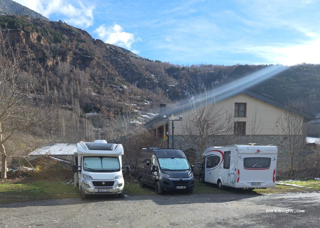 Public grass and dirt parking next to the other public parking lot (which is larger and usually less crowded). It is a parking specifically authorized by the Municipality of the municipality for motorhomes and campers, in which it is allowed to spend the night without camping. Thank you for not unpacking anything.