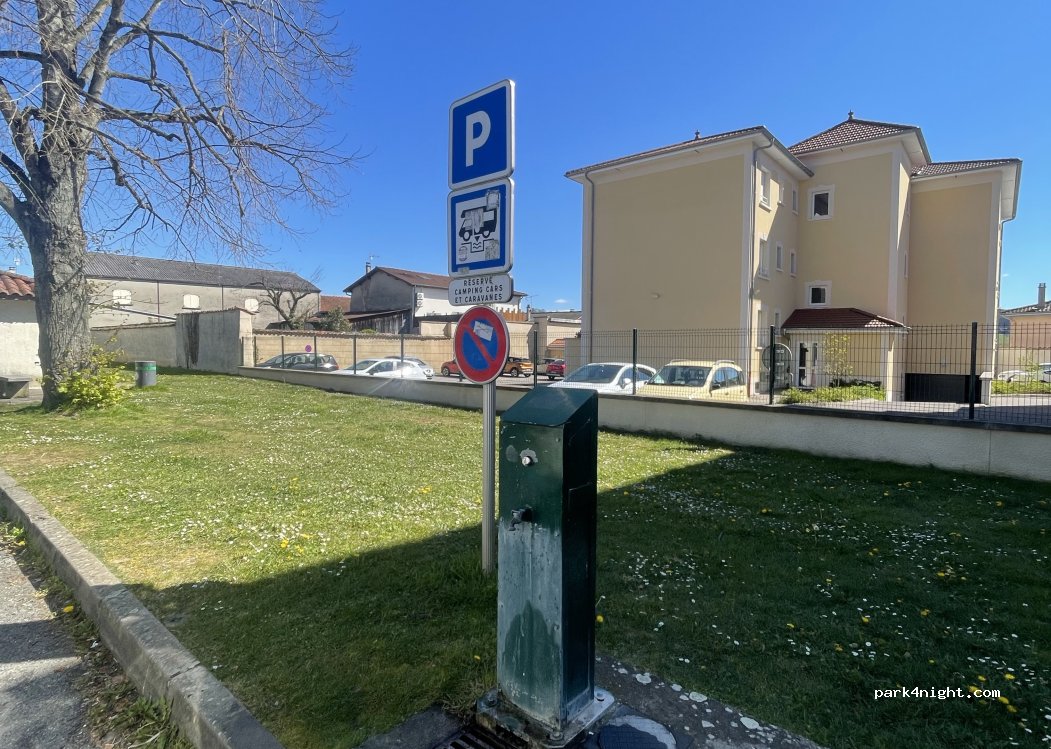 Idéal pour faire une petite halte d’une nuit quartier relativement calme avec un grand Parking, avec un WC publics.. Les services fonctionnent très bien et ils sont gratuits. Merci à la commune de mettre à disposition tout cela.