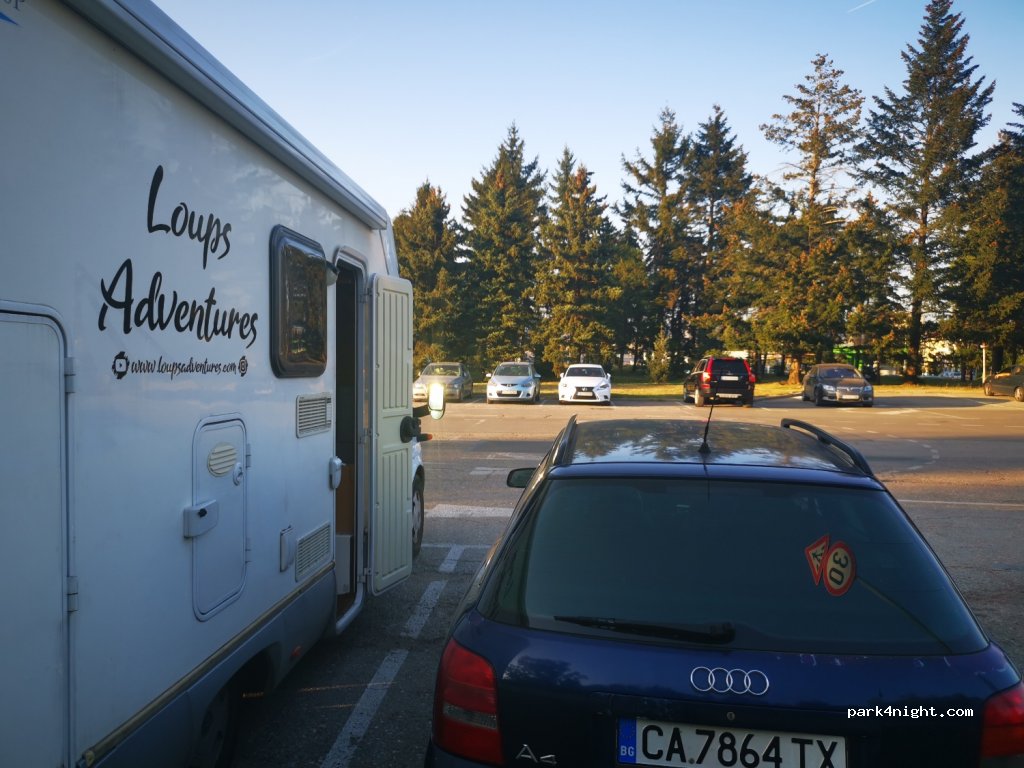 Parking plat et facile d accès même pour gros camping car. en revanche, courses de voitures le soir... ne pas se garer le long de la voie mais plutôt au début du parking attention : on entend le passage des voitures sur le voie rapide à proximité. mais le lieu dépanne bien pour passer une nuit.