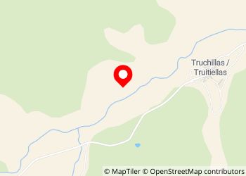 Aire de pique-nique à Truchillas. Il dispose d'un grand parking et de trois tables en pierre pour manger. De plus, les tables ont un petit toit en ardoise pour produire une petite ombre.