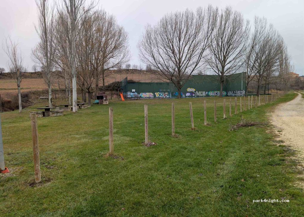 Very calm place with the tables and sport infrastructure. It takes 5 min to walk to the town. In the summer we preferred to stay there in the grass that in the other one in Santo Domingo de Silos which is the asfalt one.