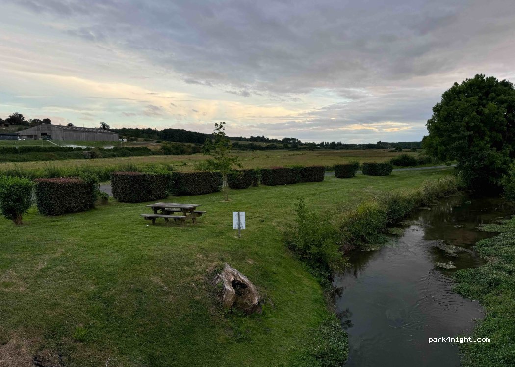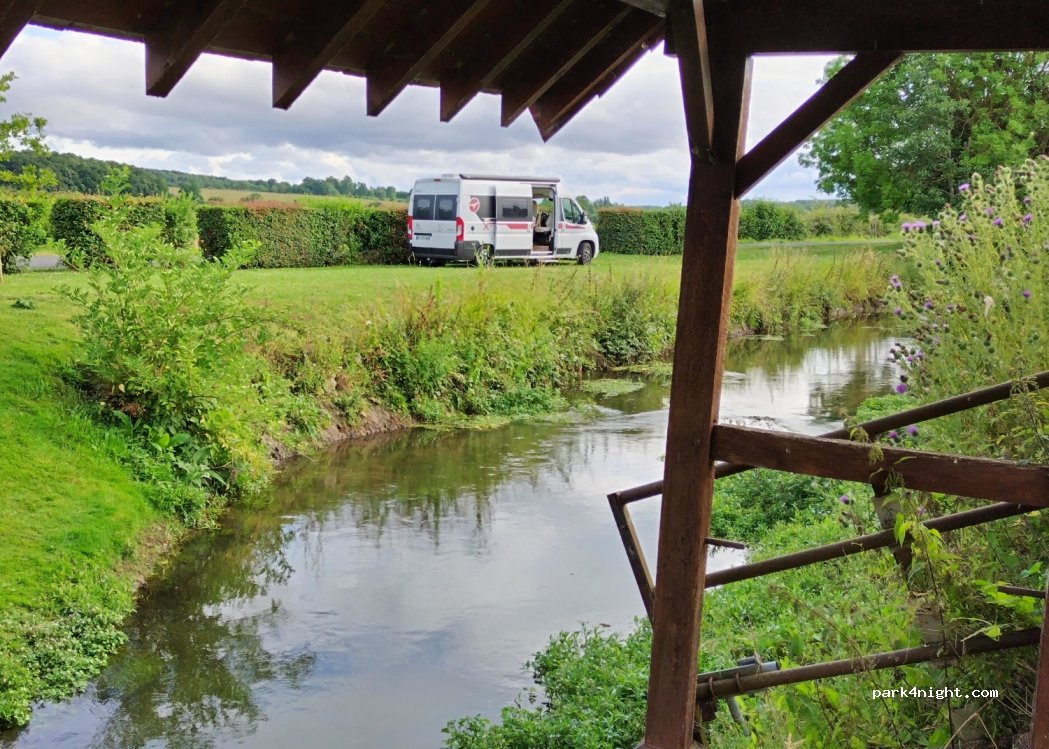 Bel emplacement, au bord d'un petit canal. L'endroit est entretenu, l'herbe coupée, les haies taillées. Par contre la RD 231 toute proche est très passagère jusqye tard le soir et tôt le matin