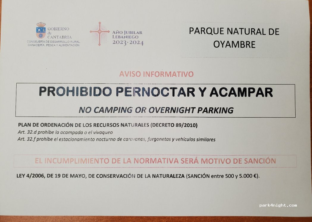 Slightly sloping plot with great views and easy access. Only day parking, as there is no official approval for this space as a night parking and overnight stays are prohibited by law here as well as in the entire Parque Natural de Oyambre.