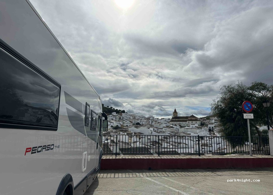 De nombreuses places de parking pour la nuit à côté du centre médical. Une vue magnifique sur le château de Teba et seulement le mercredi à cause du marché vous ne pouvez pas vous garer de 7h00 à 15h00.