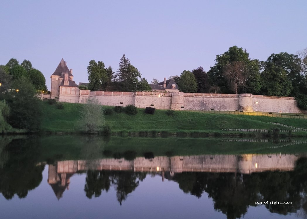 Je suis arrivé de nuit et reparti tot le matin mais nuit au calme, avec vue splendide sur les remparts et leur reflet sur l’étang. A l’occasion je reviendrais faire un stop en journée pour visiter la vieille ville qui a l’air charmante. Je n’ai pas vu de service disponible (mais je n’ai pas beaucoup cherché non plus :-) )