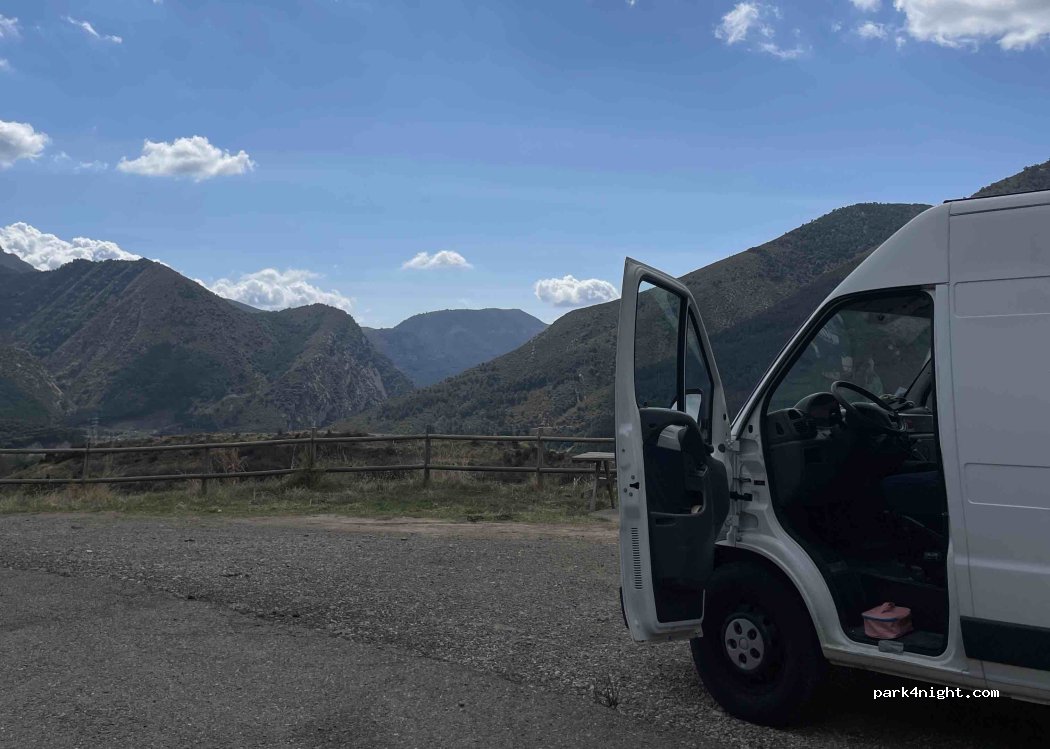 Fuimos ahí por no convencernos los sitios recomendados en esta zona. Es un mirador a Arguís situado enuna carretera rural y que tiene una mesa de picnic. Zona muy tranquila para descansar y/o pernoctar aunque se oyen los coches de la carretera principal. Precioso sitio para ver las estrellas y escuchar la naturaleza.