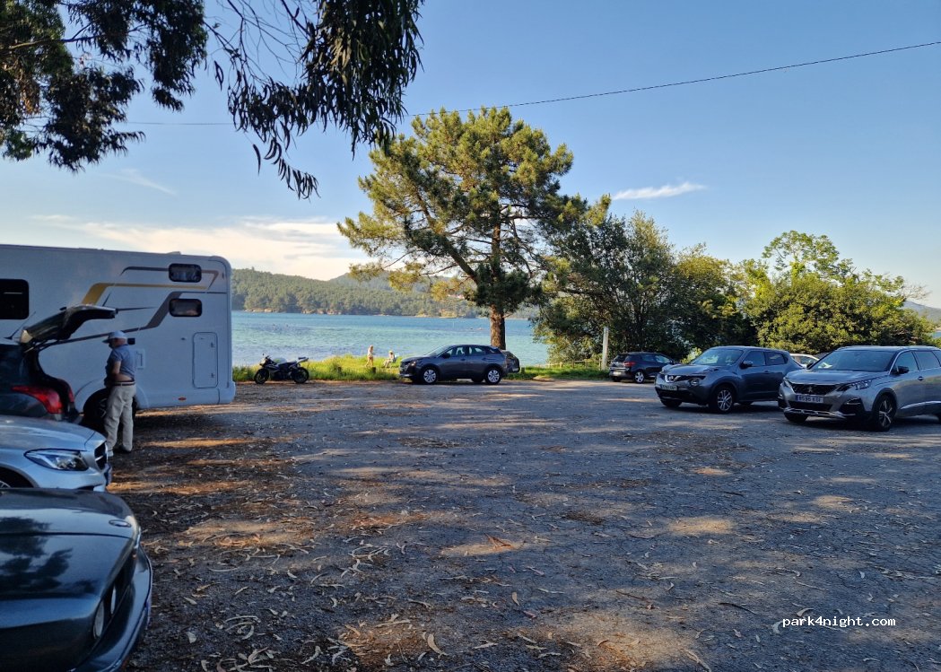 Lugar muy tranquilo y seguro al lado de la playa Testal (no se recomienda el baño por contaminación). Hay un sendero que comunica esta playa con otras hasta llegar a Portosín. Está iluminado por la noche y no hay servicios, solo contenedores y ducha con Lavapies