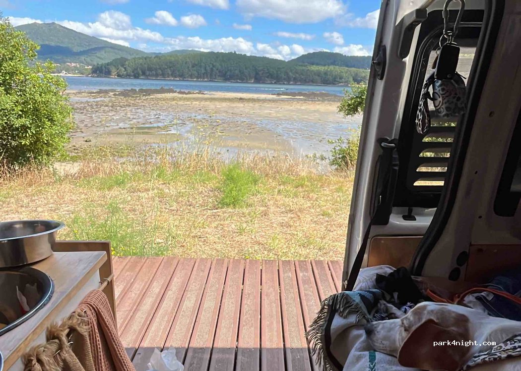 Sitio espectacular para pasar la noche y el día. Iluminado y llano. Vistas preciosas a la ría de Noia. Paradisíaco. Apartado de la carretera.