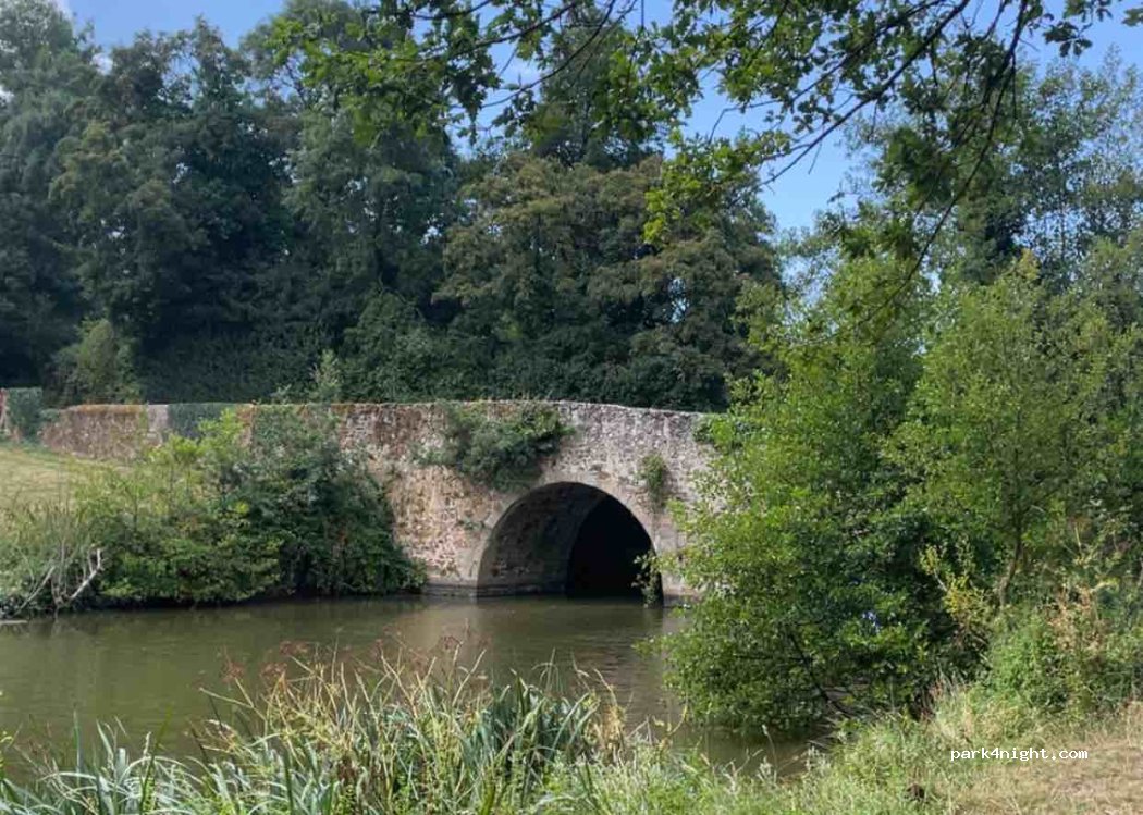 spot tranquille, beau et reposant après une journée de route. je confirme des toilettes à droite avant le pont.