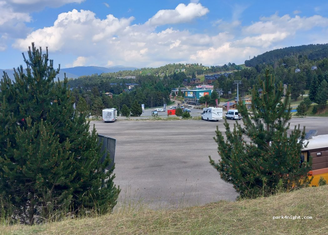 Parking habilitado para A.C., nosotros fuimos con nuestra camper, pasamos noche genial, sin ruido y vistas espectaculares tanto por la noche (cielo estrellado sin contaminación lumínica) cómo por el dia, vistas a la montaña. Al lado del teleferico de la Molina. Hay actividades para niños durante el dia, inchables, tirolinas,...