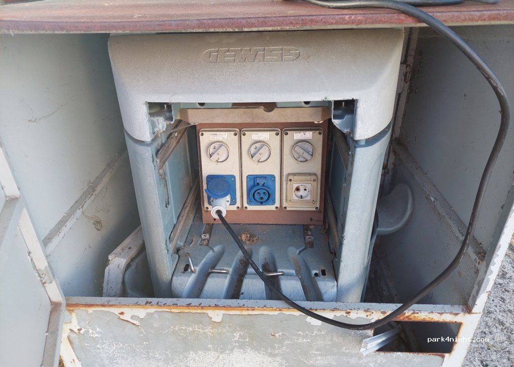 Local com uma vista muito bonita, com um parque em volta. Passamos o dia e usamos a eletricidade, a caixa com as fichas se encontra na última foto. É possível realizar o despejo de água cinzas, mas não tem água. Parece que a área foi abandonada ou está desativada. O rapaz da associação foi muito gentil e se dispôs a deixar usar a mangueira de água se precisasse.